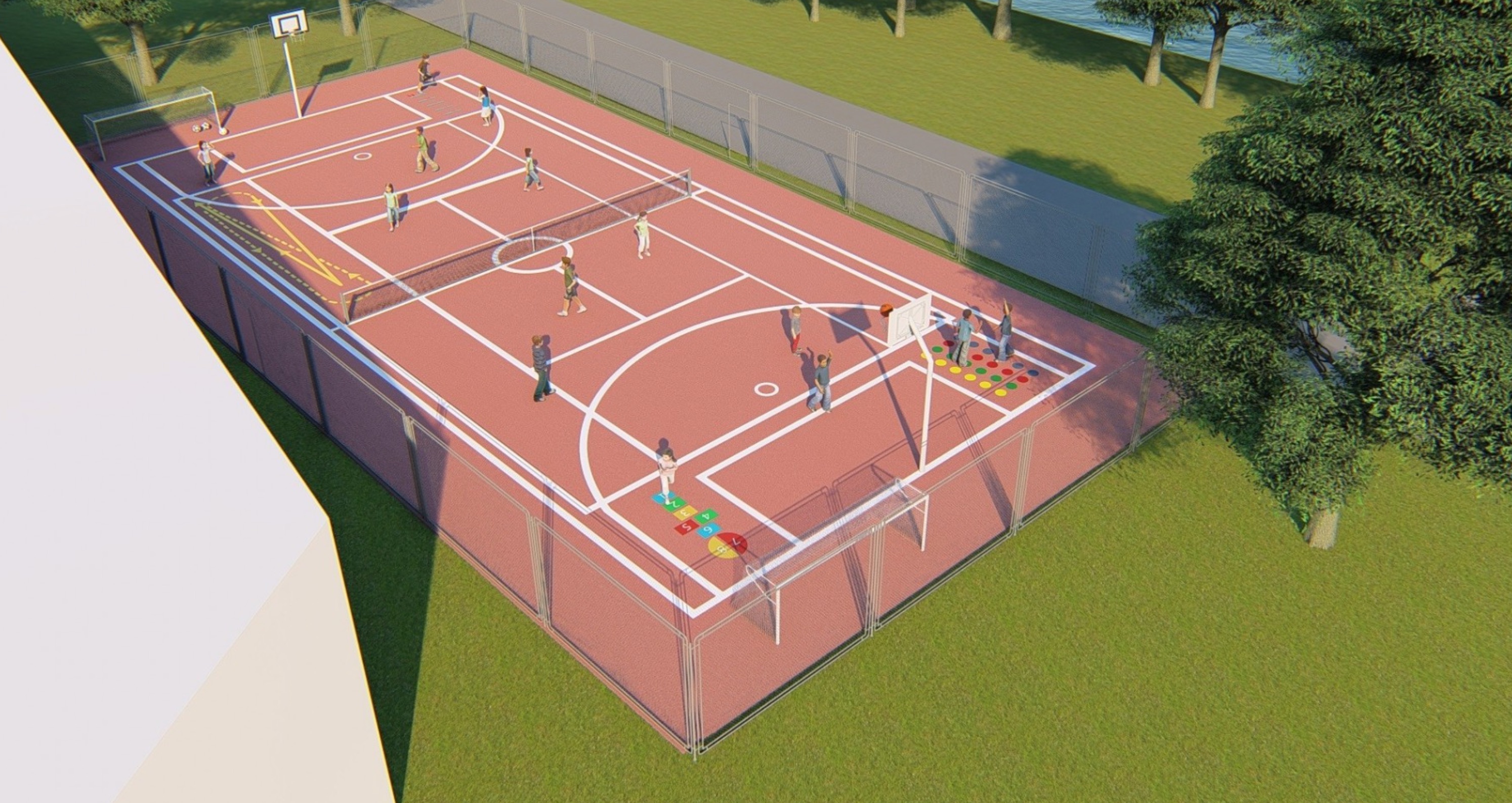 toto hřiště je prostor vyhrazený zejména pro míčové hry a je oplocen vysokým plotem. Toto hřiště je ve velmi špatném stavu. V prosinci roku 2020 jsme nechali zpracovat projekt včetně vizualizace na kompletní rekonstrukci tohoto hřiště. Podali jsme žádost o dataci a na 2. polovinu tohoto roku byla plánovaná realizace obnovy. Dotaci se bohužel nepodařilo získat proto o ní budeme žádat opětovné, na podzim roku 2021.
